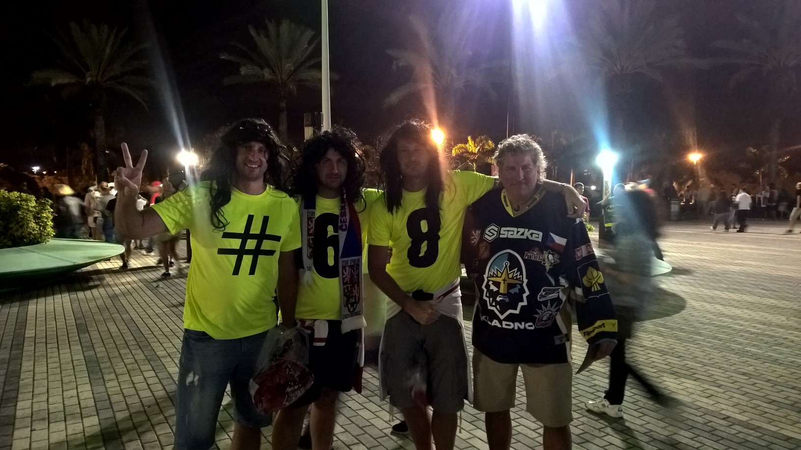 Have to send a shoutout to the three guys from the Czech Republic who hoped to see their national hero in action for three games. They were ready for a crowd shot if Jagr had played and scored: