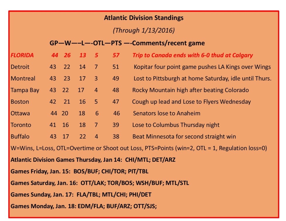 First place Panthers visit Ottawa tonight