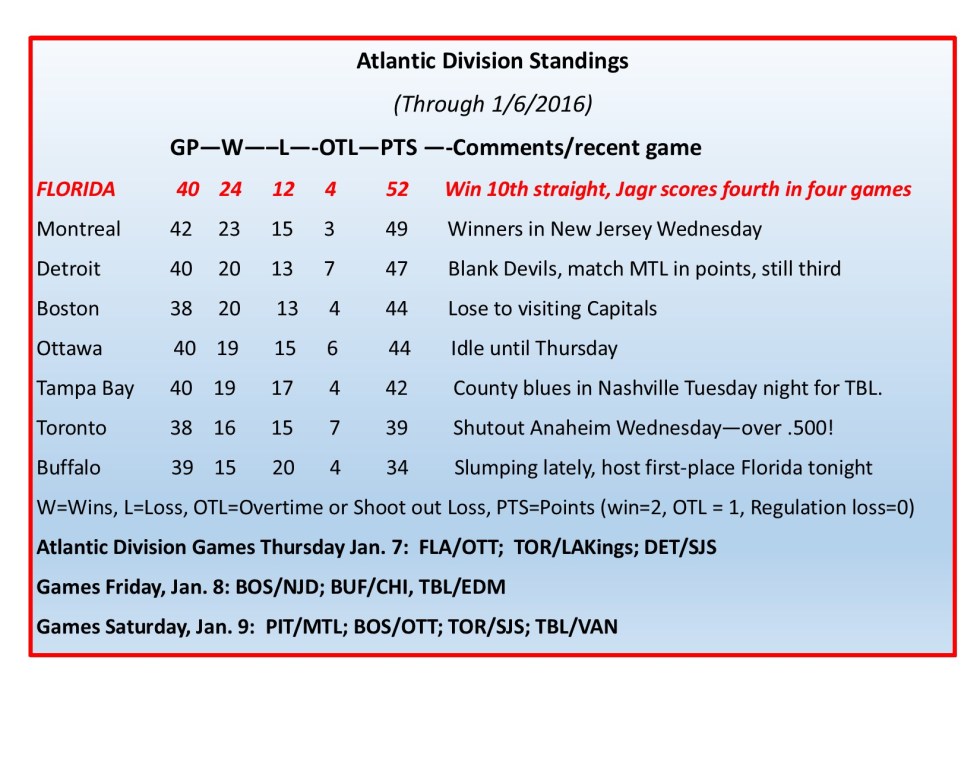Game 41: FLA 3-OTT 2, Panthers 25-12-4-54 after winning 11th straight. Barkov GWG, Jagr assist