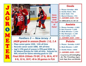 Game 82: @FlaPanthers 5-@NHLCanes 2, @Jagr finishes season 27 G-39A-66 P, +23. Playoffs start Thursday for Panthers, schedule released