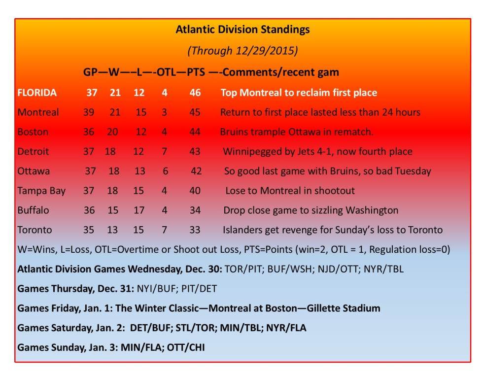 Florida Panthers finish 2015 in first place, as Jagr now 22 points behind Gordie Howe’s 1850 career points
