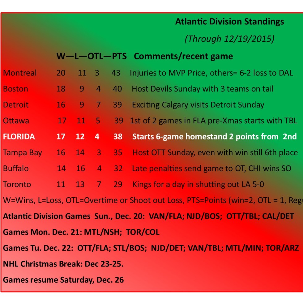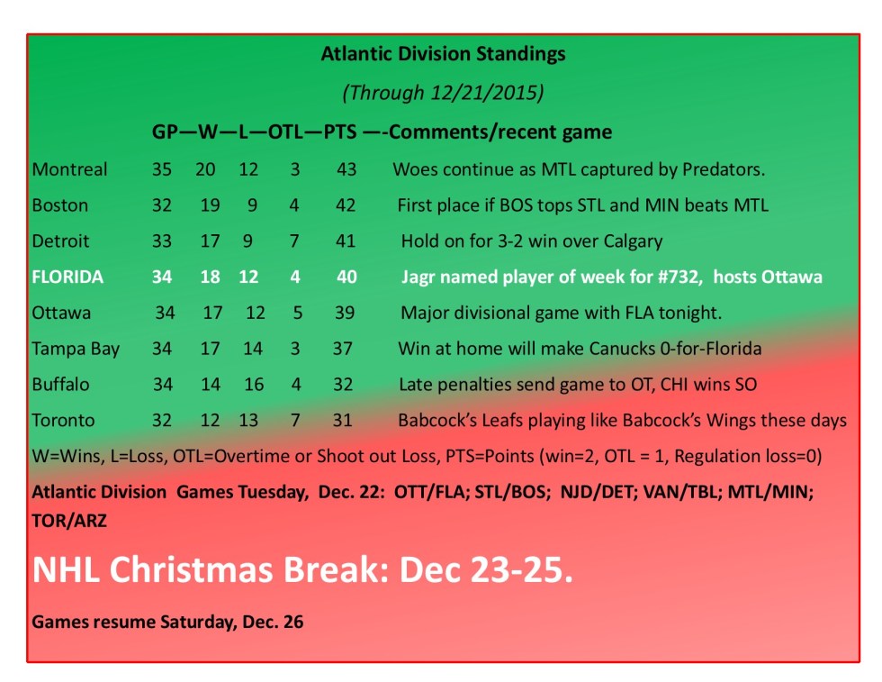 GAME 30: Boston 3-FLA 1, Jagr 0 pts Season Breakdown by 10 game segments